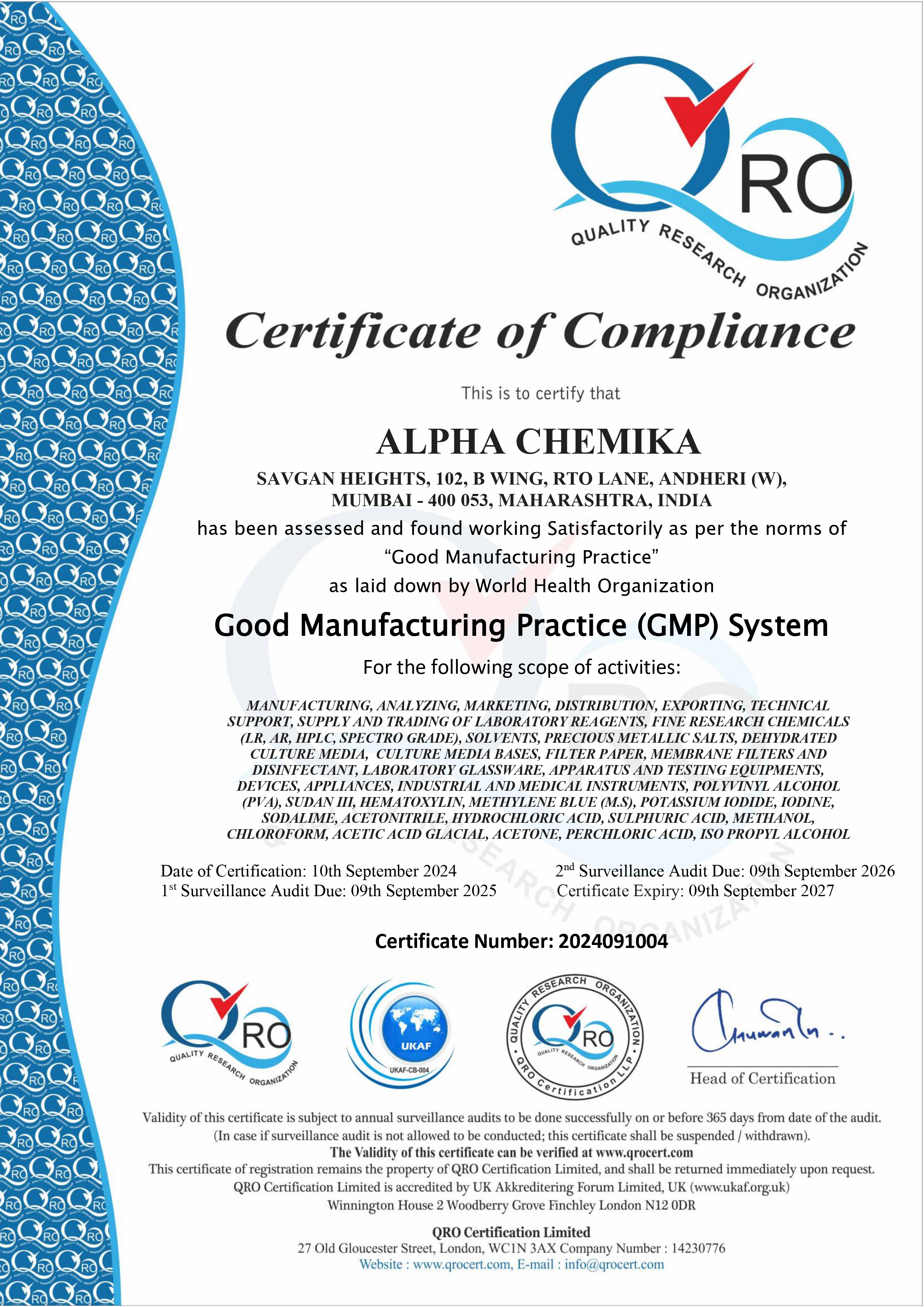 In a matter of years with our team work and efficiency, not forgetting our superior products, we have been able to establish a strong market share. ALPHA CHEMIKA provides precisely what our customers need. With the highest quality materials at the lowest possible cost, we are confident that you will be pleased with our products and services. Our dedicated team will provide the best solution for your business, ensuring every aspect of quotation, order processing, packging and shipment is carried out smoothly & professionally.