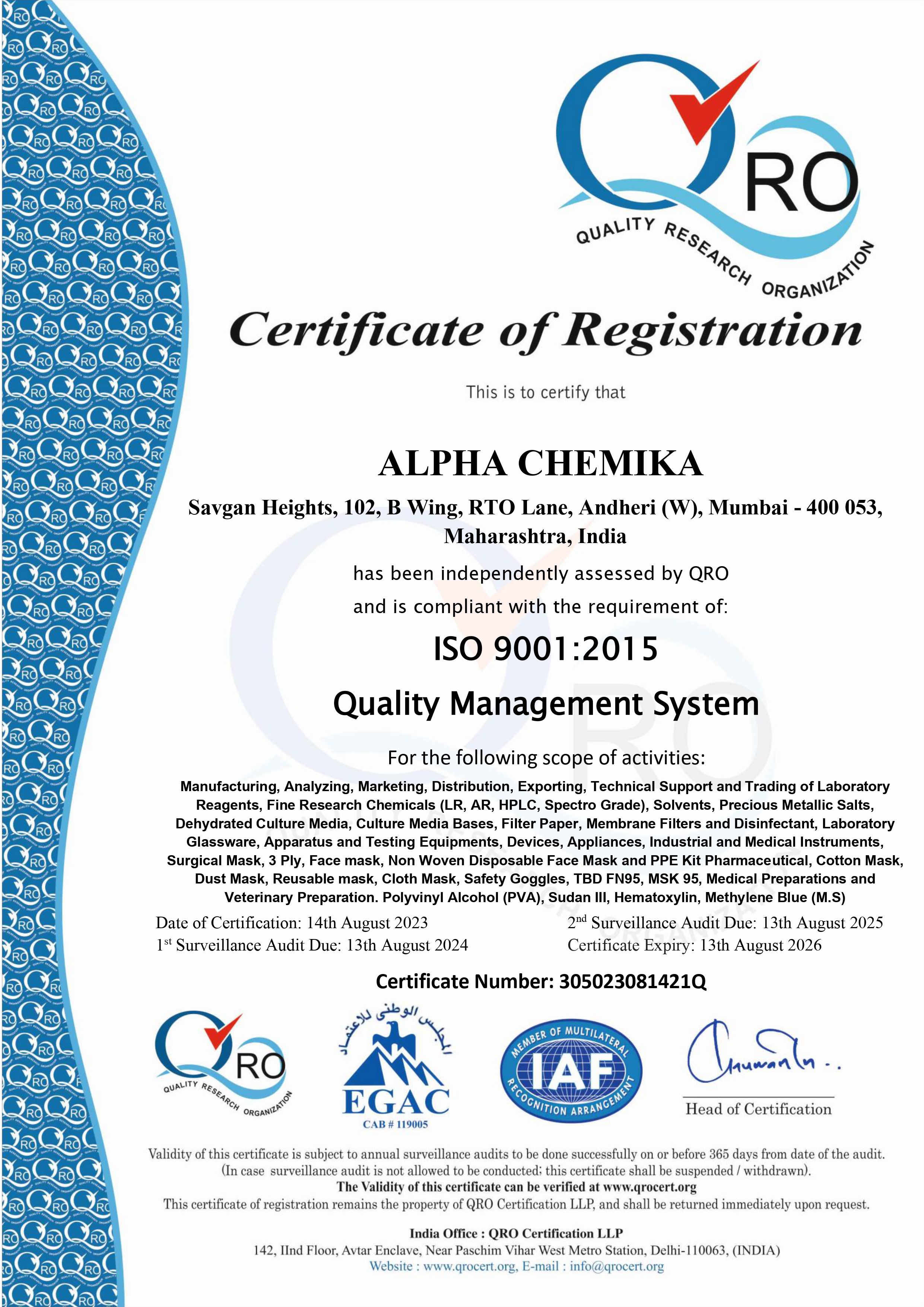Quality assurance has been a long tradition with Alpha Labchem. Quality is priority in all activities carried out in our Establishment. Use of Statistical Quality Control Methodology as a Management tool has enabled us to maintain strict control at all levels and ultimately on the Products.